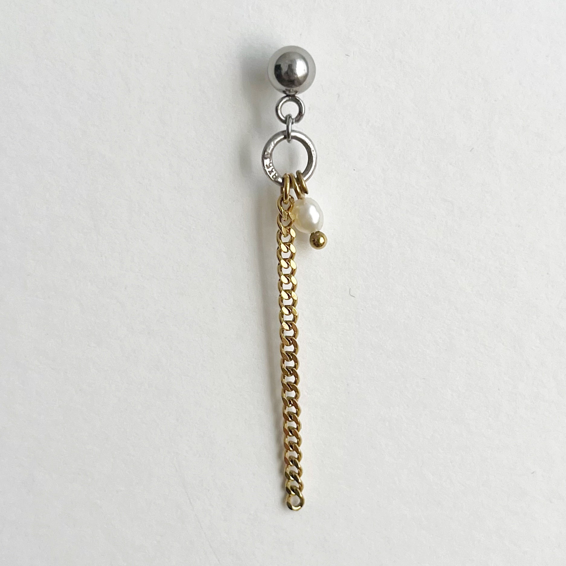 Boucle d'oreille - Perle d'eau douce & maille cubaine