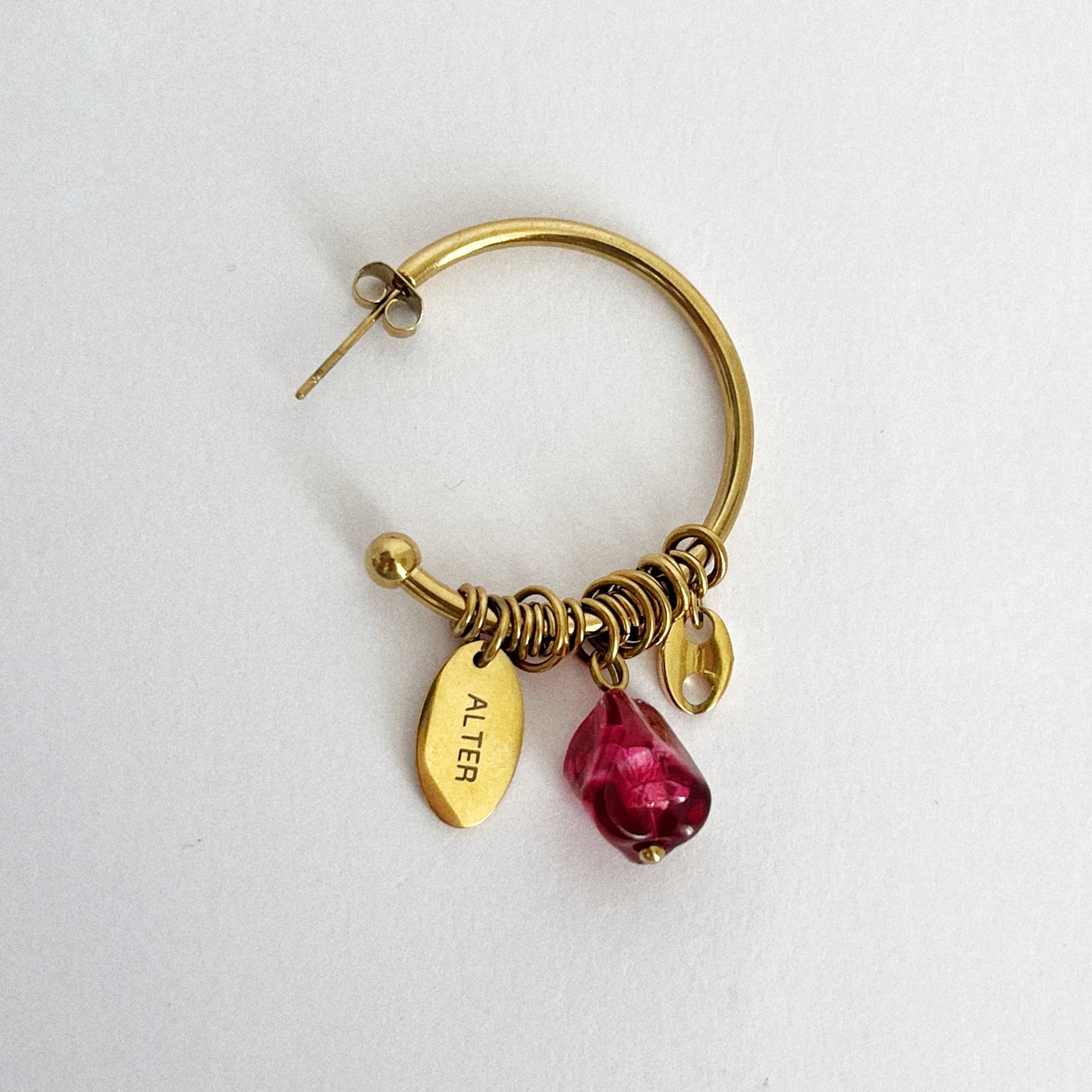 Boucle d'oreille - Perle grenat