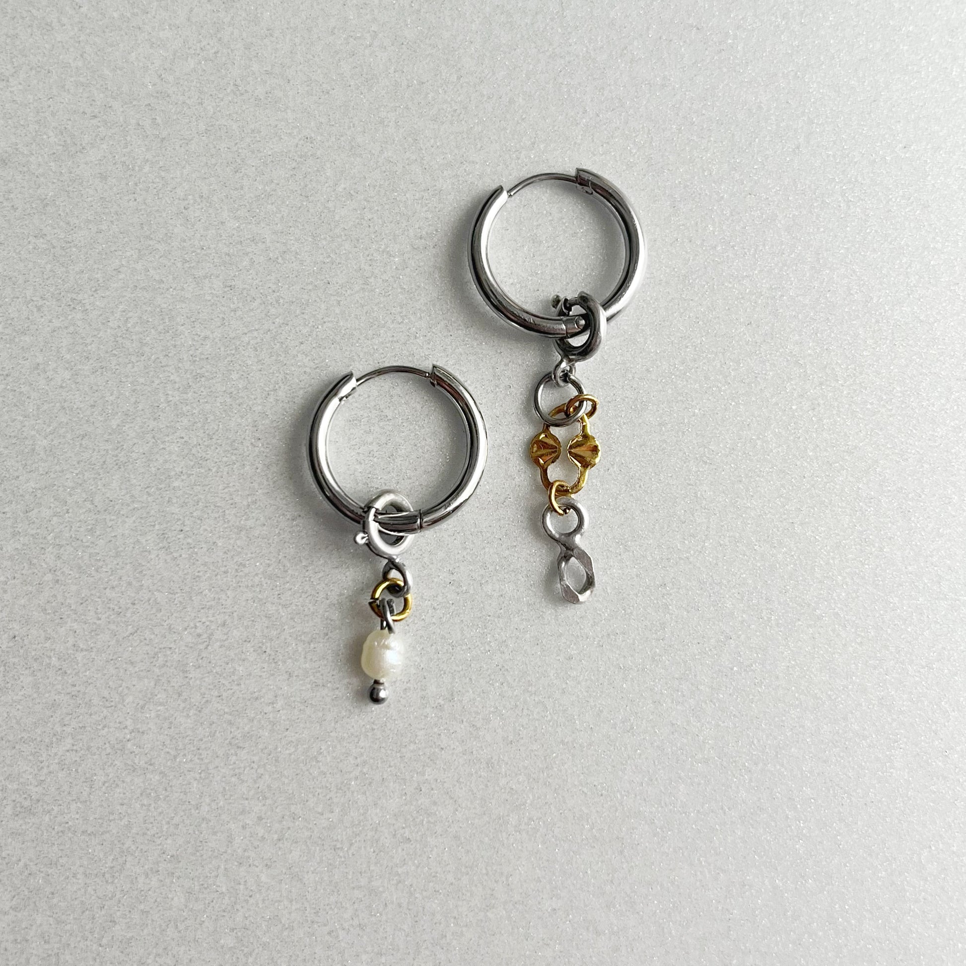 Paire de boucles - Argent & acier doré